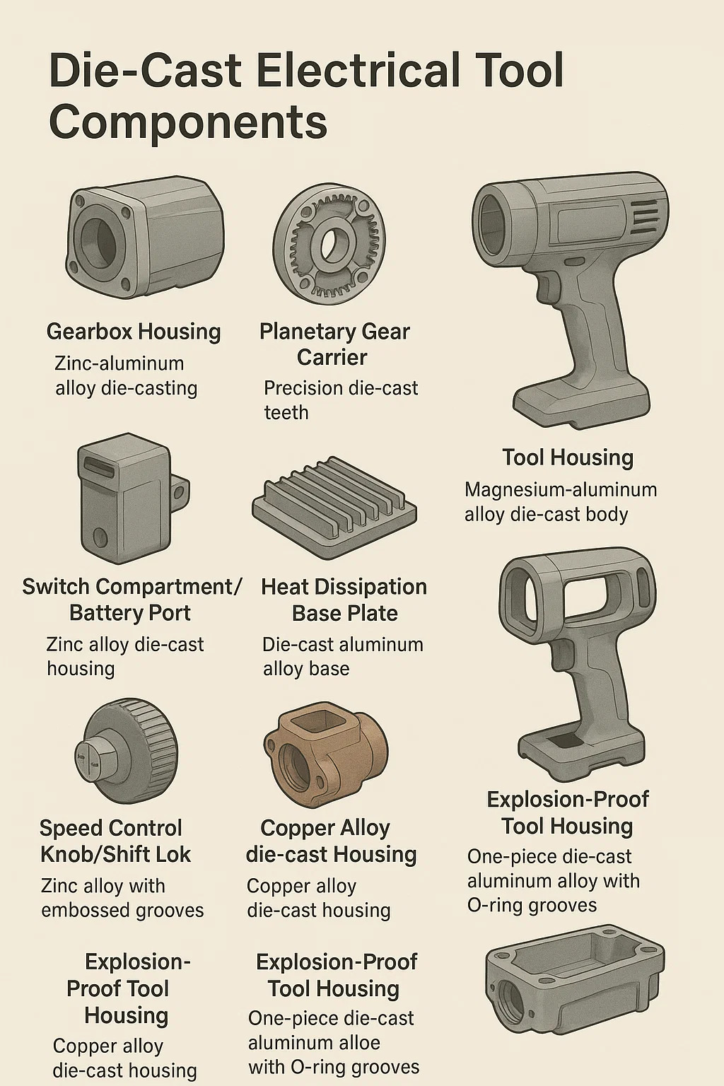 Podrobné vysvětlení Elektrický nástroj Die-Cast Komponenty