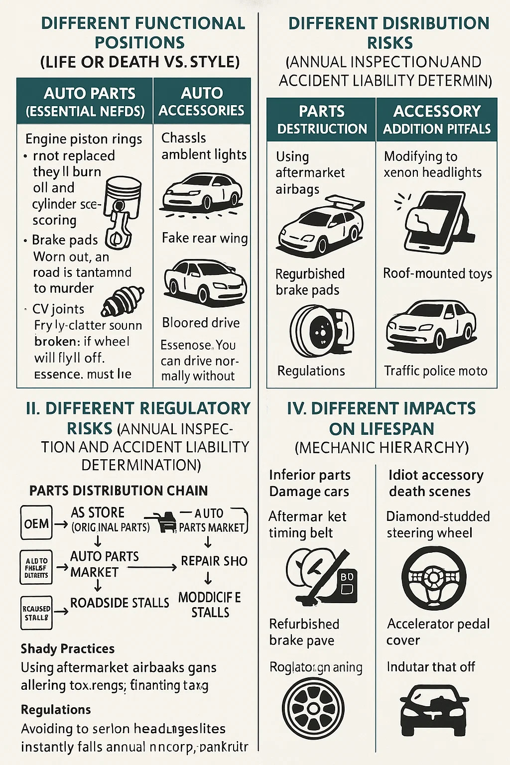 Výměna dílů Červené čáry: Použití airbagů pro trh s náhradními díly: Při nehodě se neaktivují, což vede k odmítnutí výrobce odškodnit a k trestní odpovědnosti.